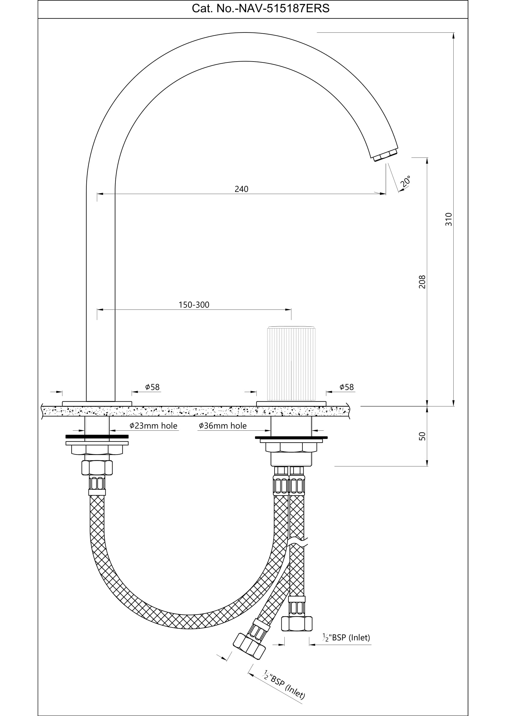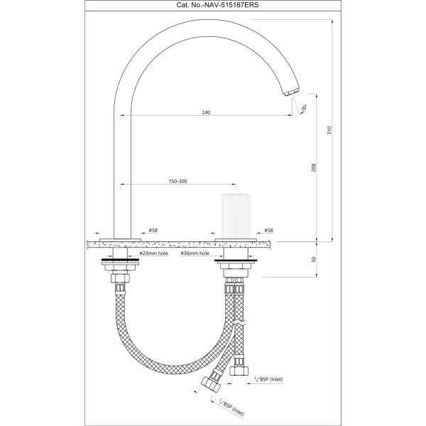 2-Hole Basin Mixer with Extended Round Spout without Popup Waste