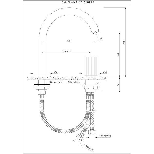 Description: 2-Hole Basin Mixer with Round Spout without Popup Waste
