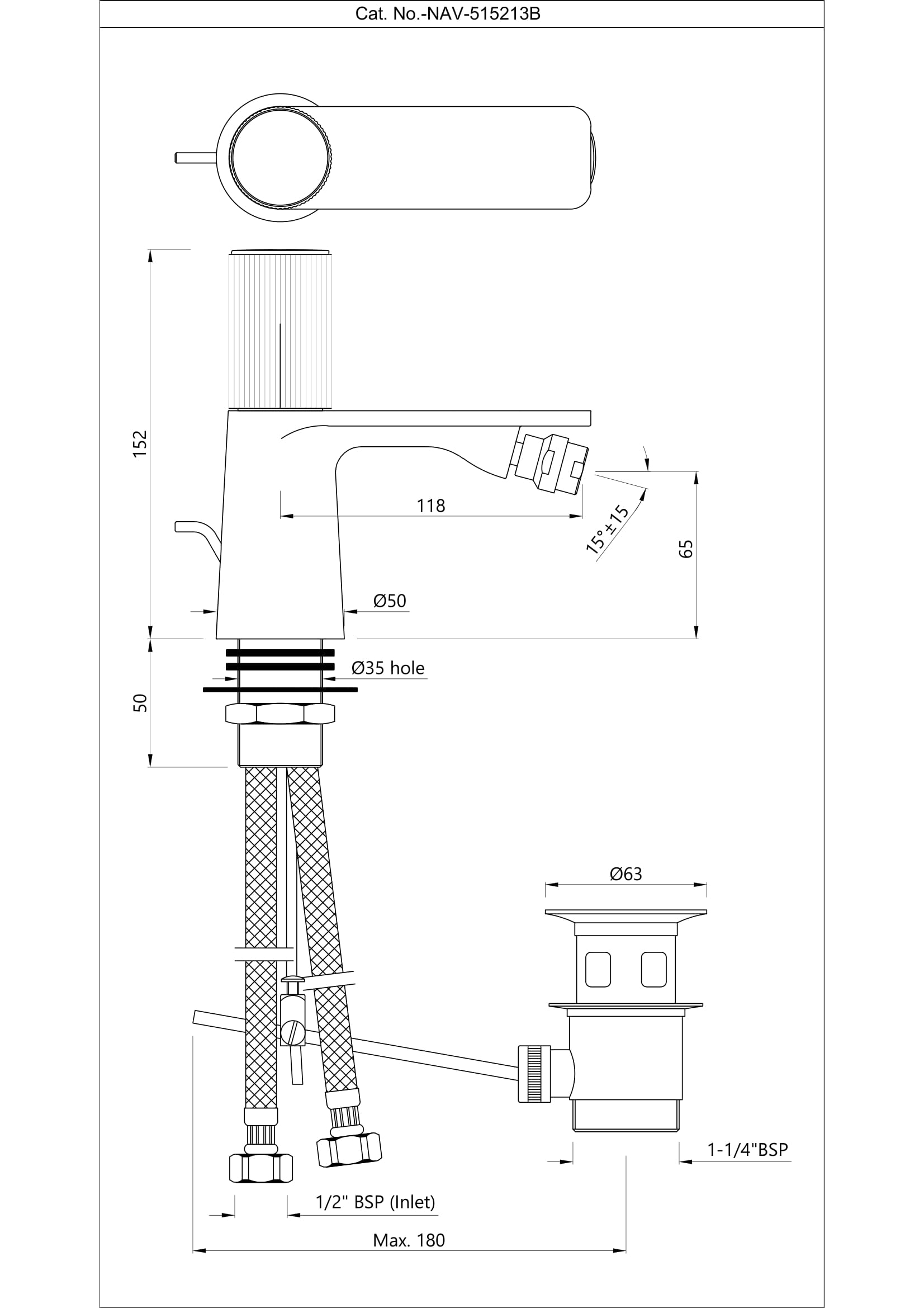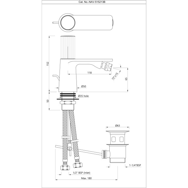 Description: Bidet Mixer with Popup Waste System with 375mm Long Braided Hoses