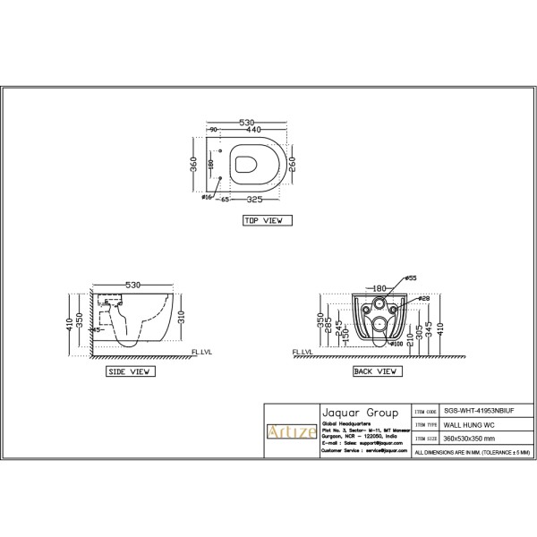 • Jaquar reserves the right at its sole discretion, to change/modify/alter any product specification at any time without notice, where improvement can be effected in design, development and dimensions.