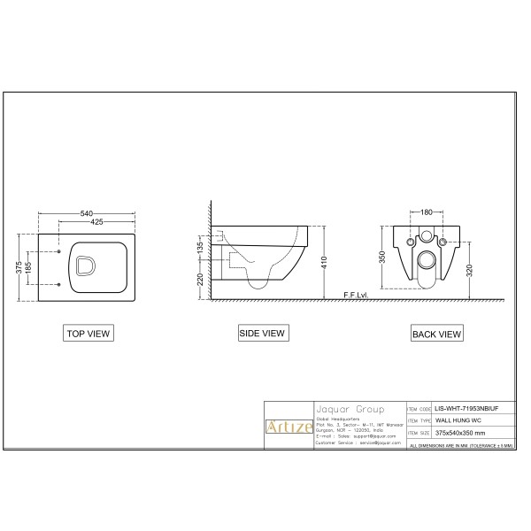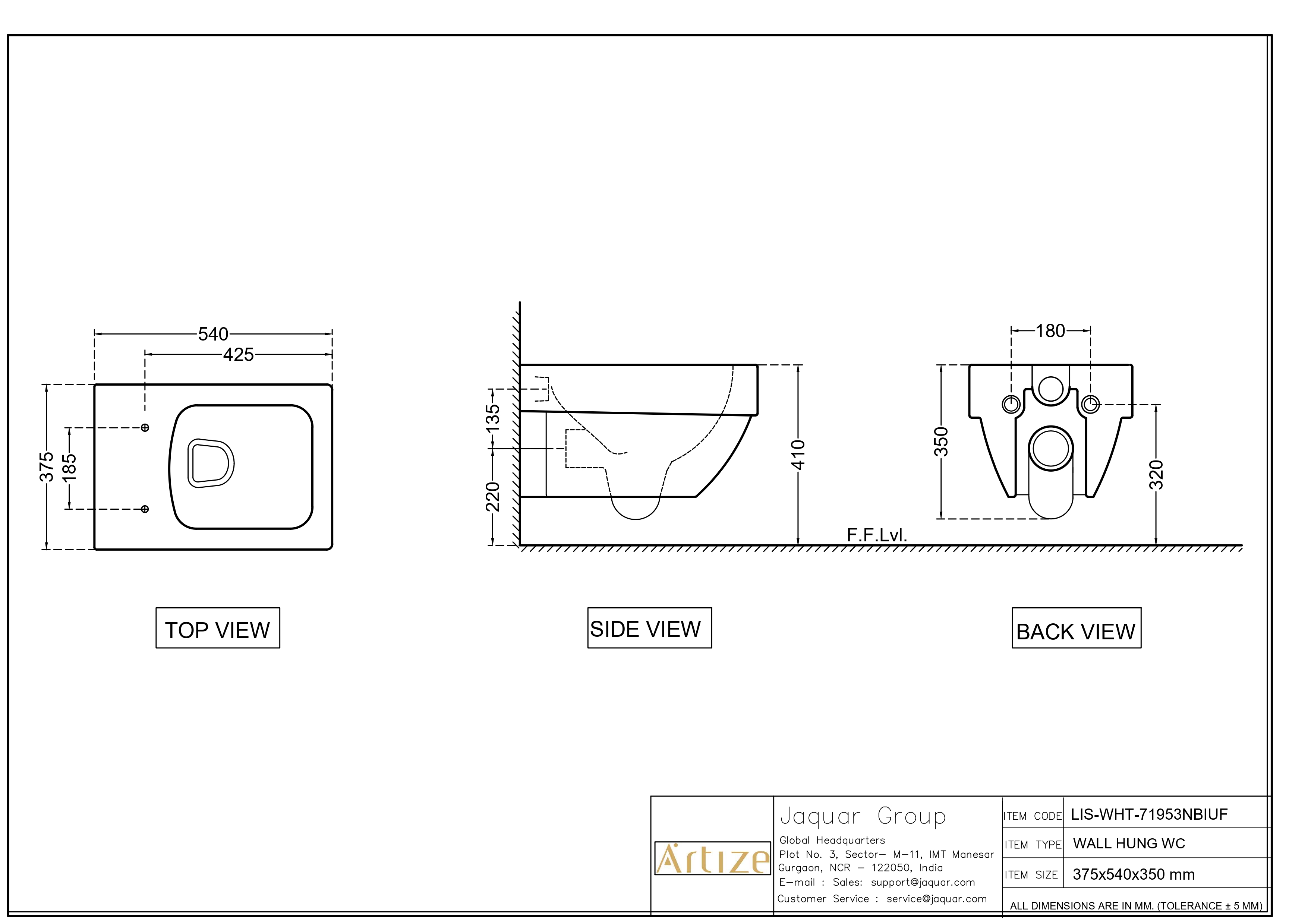 • Jaquar reserves the right at its sole discretion, to change/modify/alter any product specification at any time without notice, where improvement can be effected in design, development and dimensions.