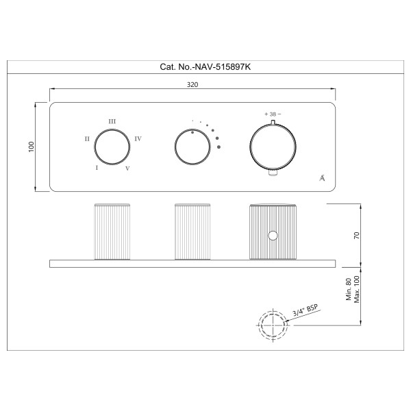 Description: Exposed Part Kit of Thermostatic Shower Mixer with 5-way diverter, Rectangular Flange (Compatible In-wall Part ALA-509897 is sold separately)