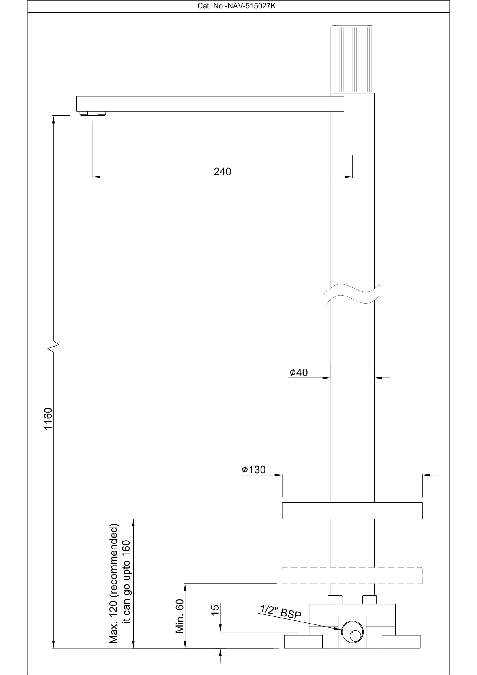 Description: Exposed Part Kit of Floor Mounted Basin Mixer (Compatible In-Floor part ALA-509027 is sold separately)