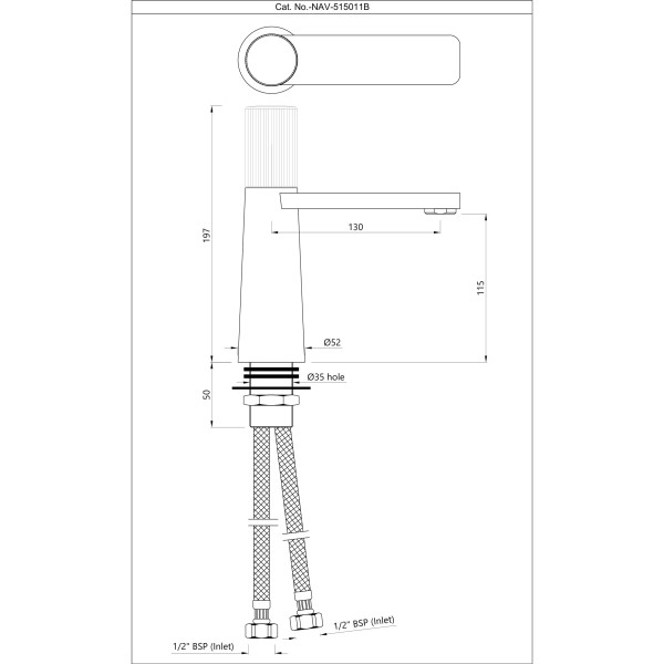Description: Basin Mixer without Popup Waste With 375mm Long Braided Hoses