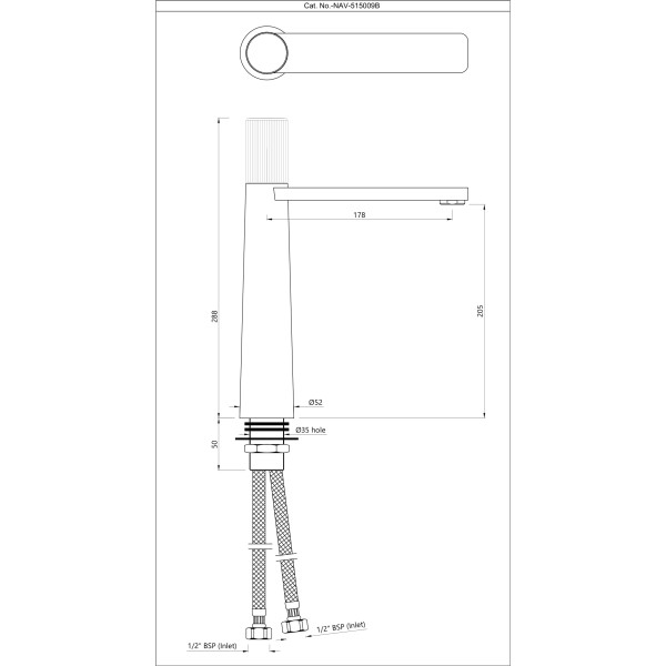 Description: High Neck Basin Mixer without Popup Waste with 450mm Long Braided Hoses