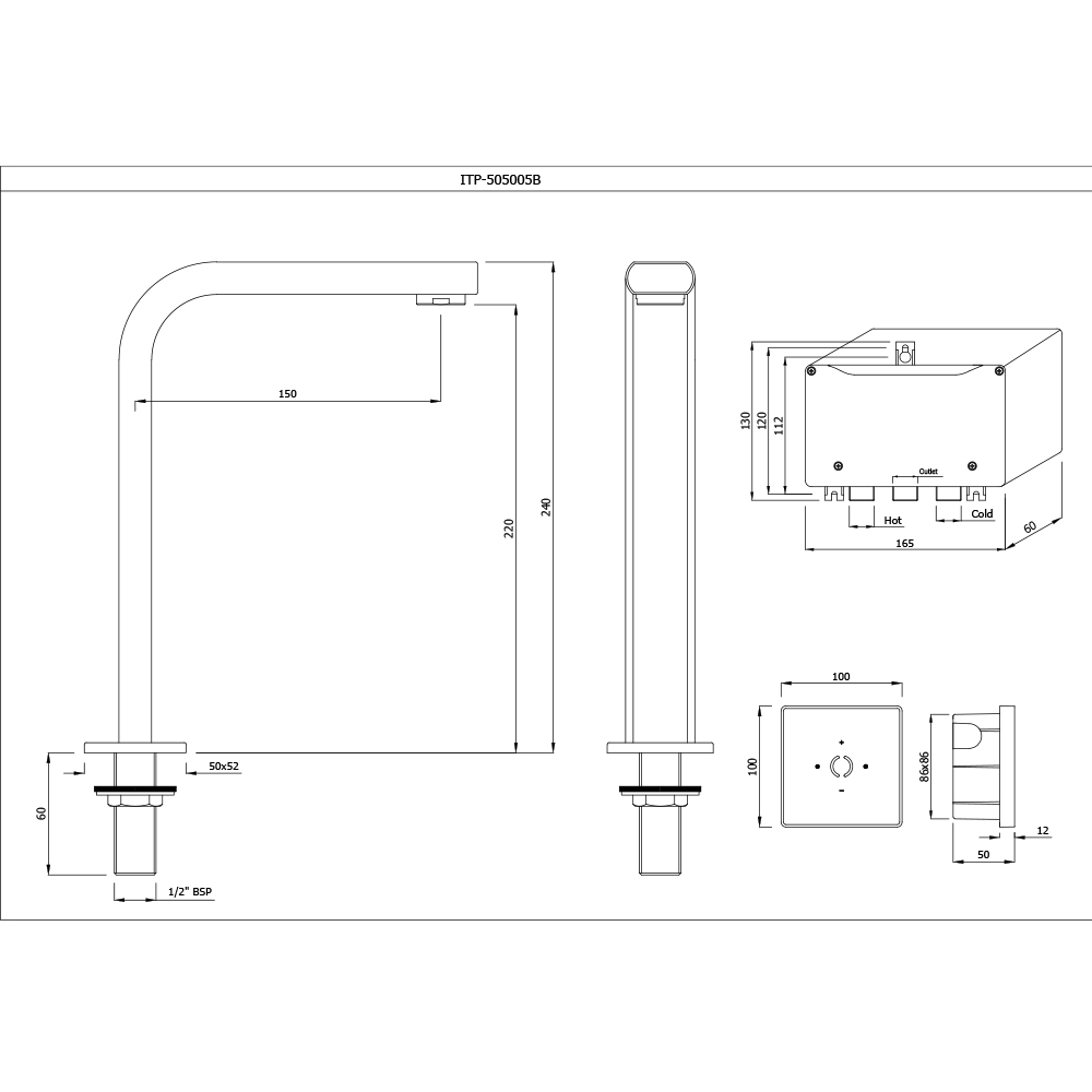 i-Tap High Neck Basin Mixer, Deck Mounted • CPU • Touchpad • Power Supply System with CPU Cable • Touchpad Cable - 1meters • Braided Hoses 18" - 03 Nos • NRV Set in-Built - 02 Nos • Filter - 02 Nos • Touchpad mounting box • Metallic clamp & screw