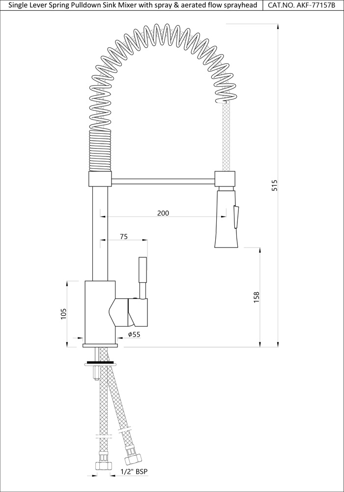 FLO2 Single Lever Spring Pulldown Sink Mixer with spray & aerated flow sprayhead with 375mm long braided hoses
