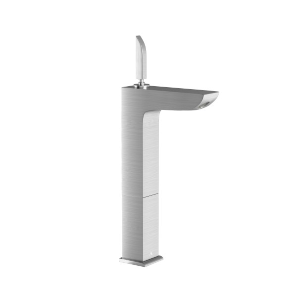 Joystick High Neck Basin Mixer (100mm Extension Body) without Popup Waste, with 600mm Long Braided Hoses, 3/8 Inch