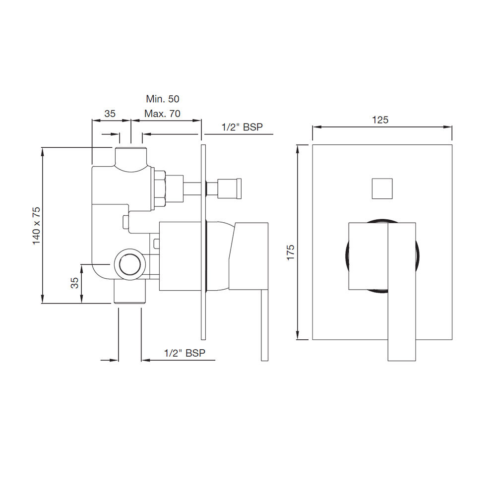Single Lever Hi Flow In-wall Diverter for Bath & Shower Mixer (With Exposed and In-wall parts)