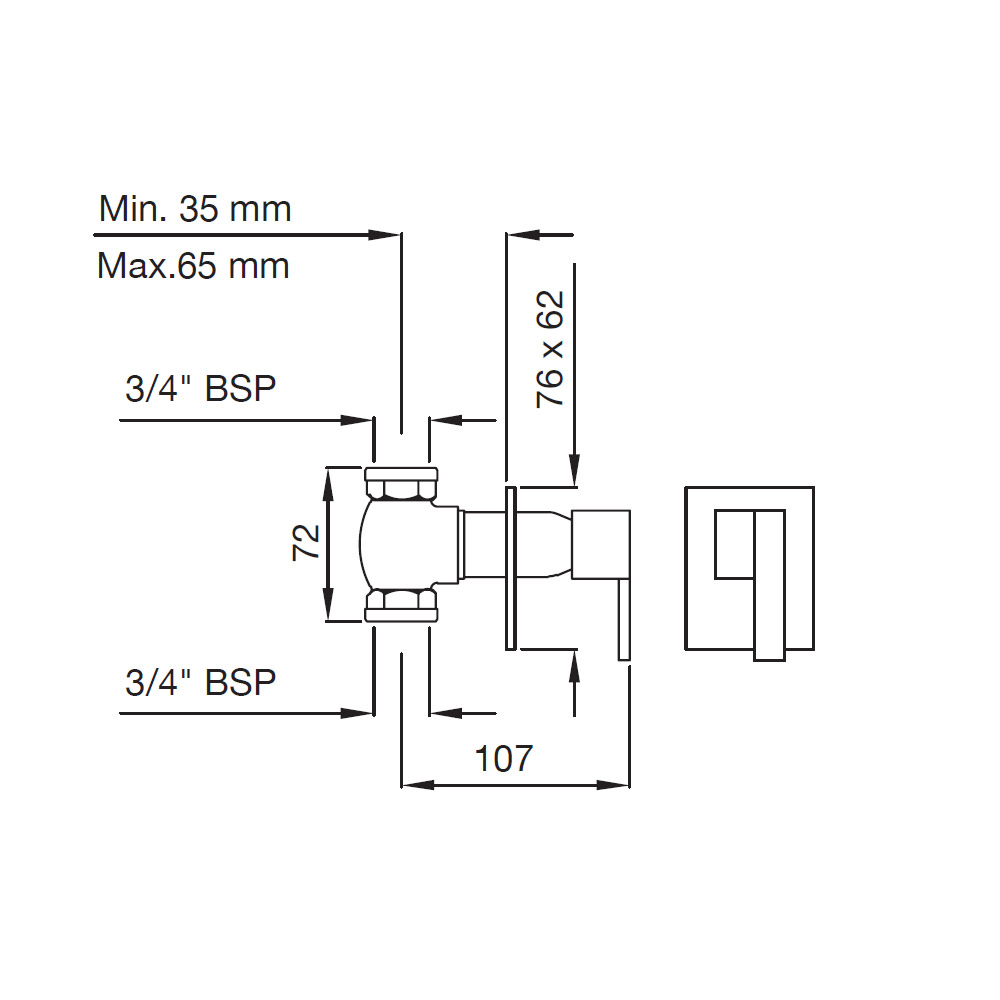 In-wall Stop Valve with Adjustable Wall Flange, Size 20mm (With Exposed and In-wall parts)